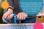 The My Comfort Cutter™ is the top-of-the-line ergonomic rotary cutter. It's comfort curve grip is especially designed to make rotary cutting easier, safer and more accurate. Seasoned cutters will appreciate how the handle reduces stress on the wrist and arm, and everyone from beginners to advanced cutters love the "track-and-guide" for straight cuts every time!